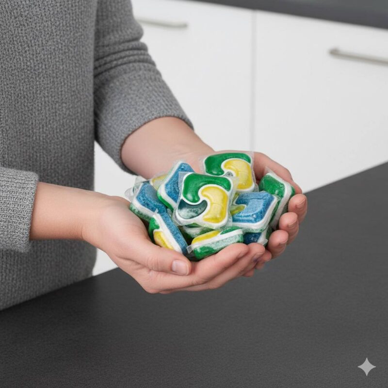 - استفاده آسان: روکش قرص قابل حل شدن در آب است و نیازی به باز کردن یا سوراخ کردن آن نیست. کافیست قرص را با دست خشک مستقیماً در جا قرصی قرار دهید.